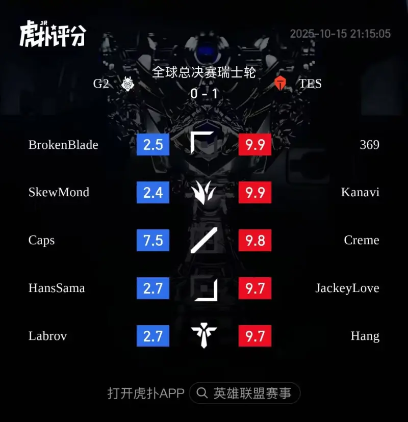 虎撲10月15日訊?2025LOL全球總決賽瑞士輪階段首日LPL三隊比賽全部結(jié)束,BLG爆冷不敵LTA美洲三號種子100T。隊敵二號種子AL力克LCK二號種子HLE,號A紅三號種子TES大勝LEC一號種子G2。開門
