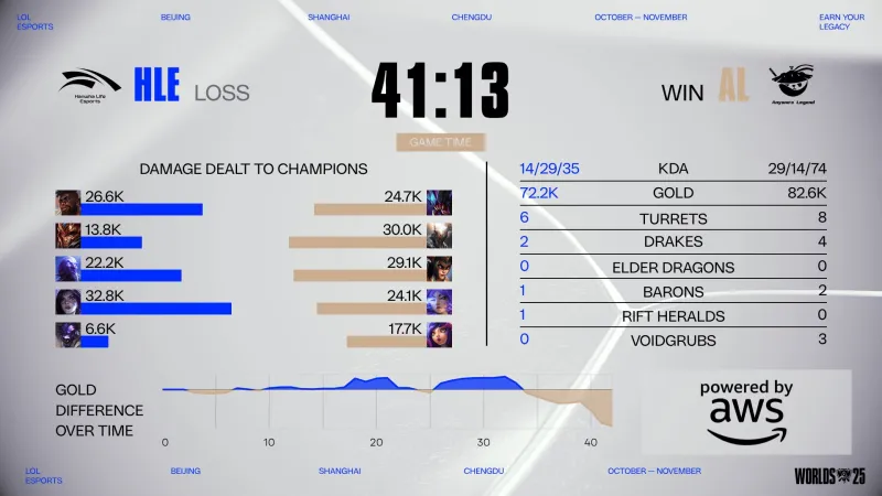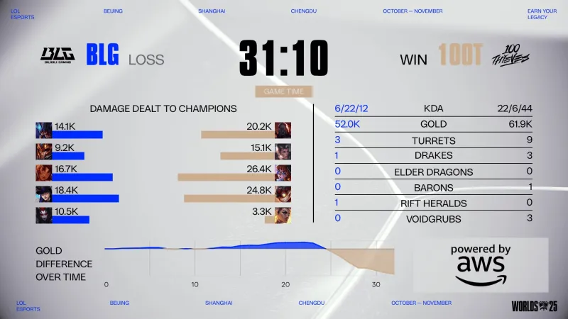 虎撲10月15日訊?2025LOL全球總決賽瑞士輪階段首日LPL三隊比賽全部結(jié)束,BLG爆冷不敵LTA美洲三號種子100T。號A紅二號種子AL力克LCK二號種子HLE,開門三號種子TES大勝LEC一號種子G2。情報