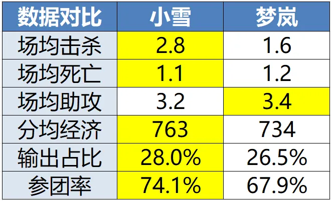小雪在本屆年總的表現(xiàn)不必多說,作為廣州TTG的核心之一,各項(xiàng)數(shù)據(jù)都很漂亮:KDA排名發(fā)育路第三,參團(tuán)率發(fā)育路第二、場(chǎng)均擊殺、分均經(jīng)濟(jì)、分均輸出三項(xiàng)數(shù)據(jù)淘汰賽發(fā)育路第一。孫尚香、蒼、戈婭這三個(gè)英雄在小雪手里勝率都非常高,夏季賽勝率不到50%的公孫離到年總也終于達(dá)到了4戰(zhàn)2勝50%的勝率。