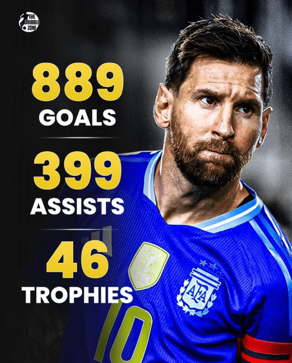 截止到目前,梅西已經(jīng)在1130場(chǎng)比賽里收獲了889個(gè)進(jìn)球、生涯數(shù)據(jù)399次助攻,個(gè)冠46個(gè)冠軍,板傳60次帽子戲法。