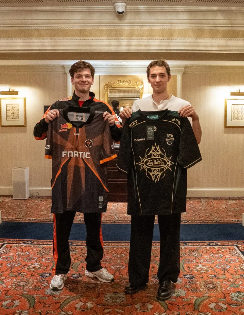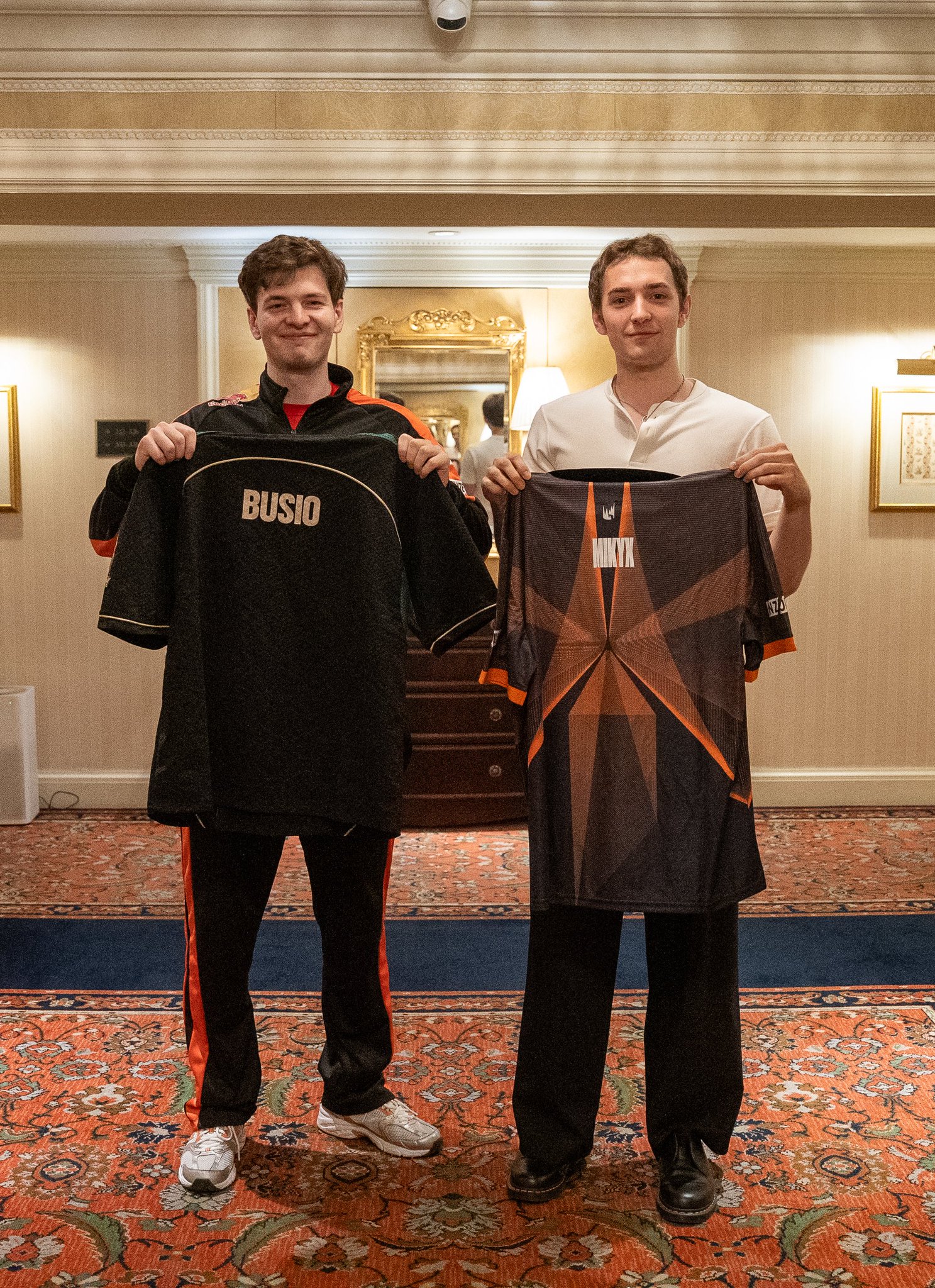 虎撲10月19日訊 FLY分享Busio與Mikyx交換隊服照片并配文:輔助之神們,祝好運,好運玩得開心,分享輔助FNC。交換