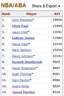助攻——8316個——歷史第十三