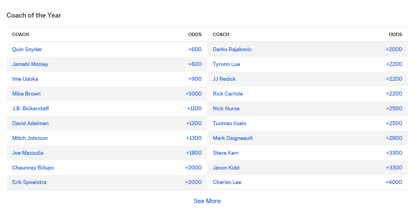 賽季開(kāi)始前,奈德ESPN更新了新賽季最佳教練的首烏賠率,具體如下: