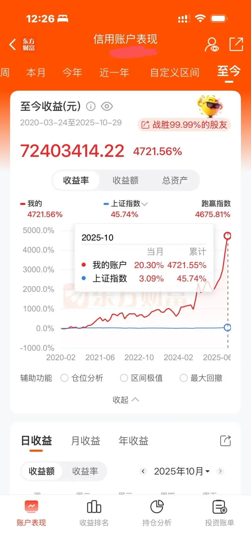 4、東財(cái)?shù)馁~戶分析里面,拉到最尾也會(huì)顯示前面的(本周),不會(huì)只顯示一個(gè)周字,這上面是無法通過任何方式改變的。當(dāng)然我是最新的APP,可以解釋是版本問題,但是我是存疑的。