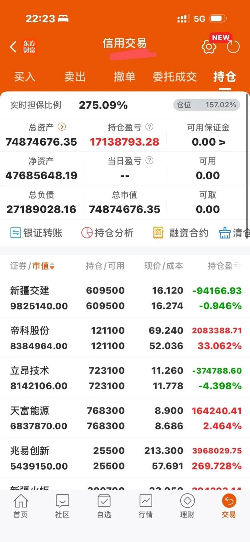 3、周末稍微搗鼓了一小會(huì),發(fā)現(xiàn)我的東財(cái)普通戶可以放大字體,但是融資那邊是放大不了的,這個(gè)是東財(cái)?shù)腁PP設(shè)定,你們有東財(cái)?shù)目梢匀ピ囈幌隆榱蓑?yàn)證這一點(diǎn)我還設(shè)置了系統(tǒng)的輔助功能放大字體,發(fā)現(xiàn)還是放大不了融資倉里的字體。