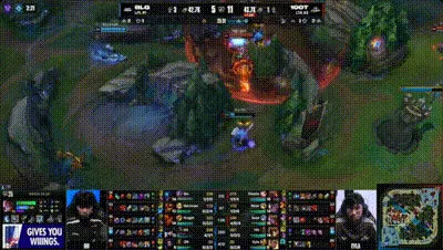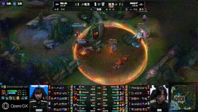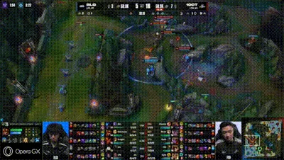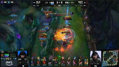 比賽第23分鐘,BLG強(qiáng)行接團(tuán)又被100T一波打出0換3。
