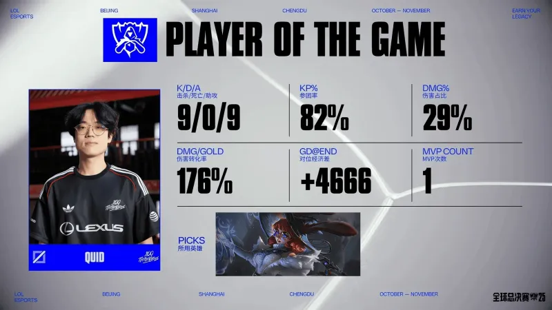 比賽第30分鐘,100T帶大龍Buff一波團(tuán)滅BLG結(jié)束比賽。