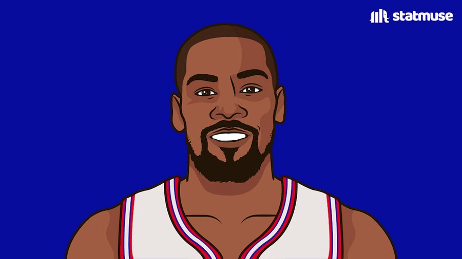 根據(jù)美媒StatMuse統(tǒng)計,杜蘭特賽季至今場均27.5分5.8籃板,投籃命中率52.2%。