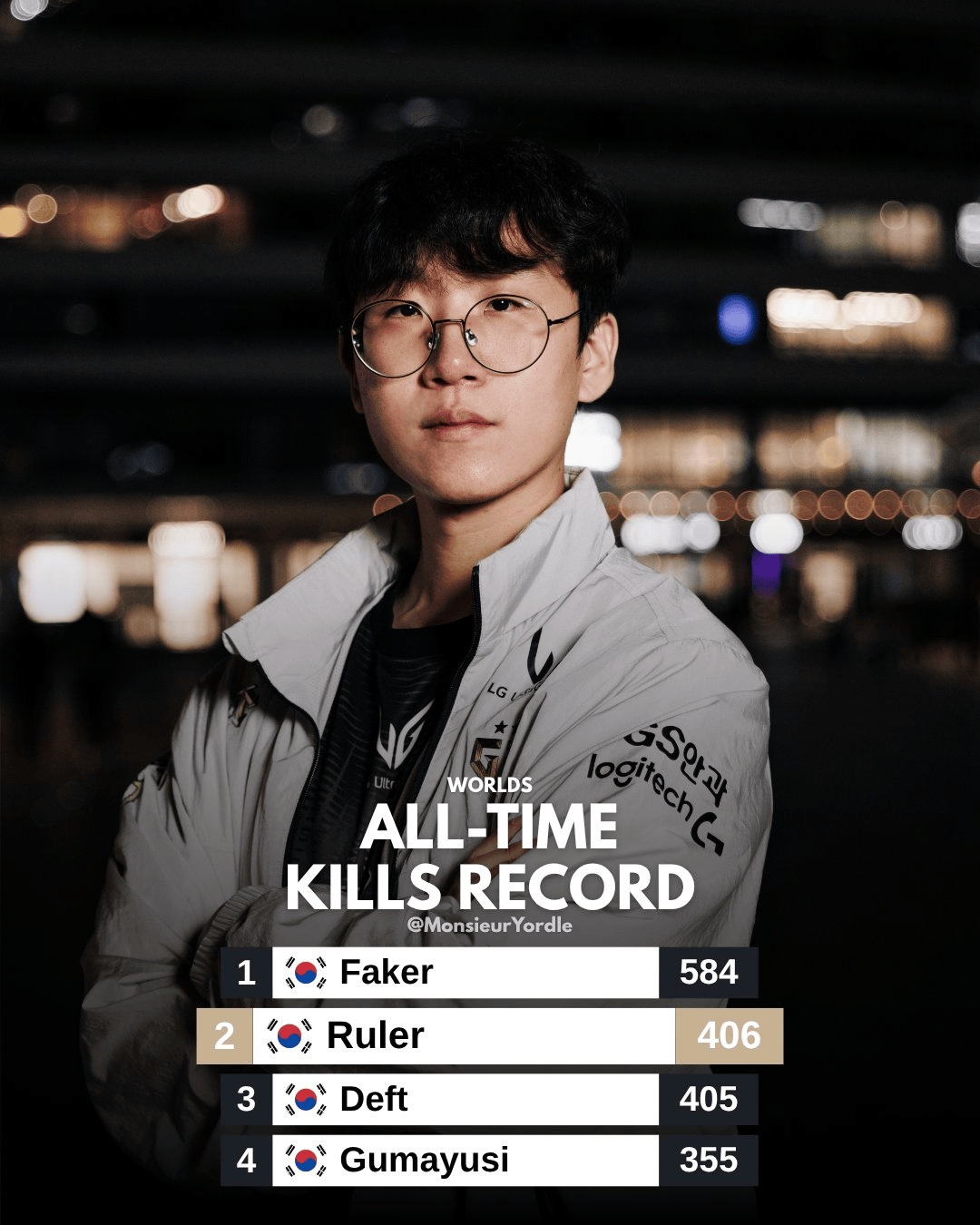 [流言板]Ruler世界賽擊殺數(shù)來(lái)到406次,流言歷史超越Deft位列歷史第二由虎撲游戲電競(jìng)資訊 發(fā)表在英雄聯(lián)盟 https://bbs.hupu.com/lol