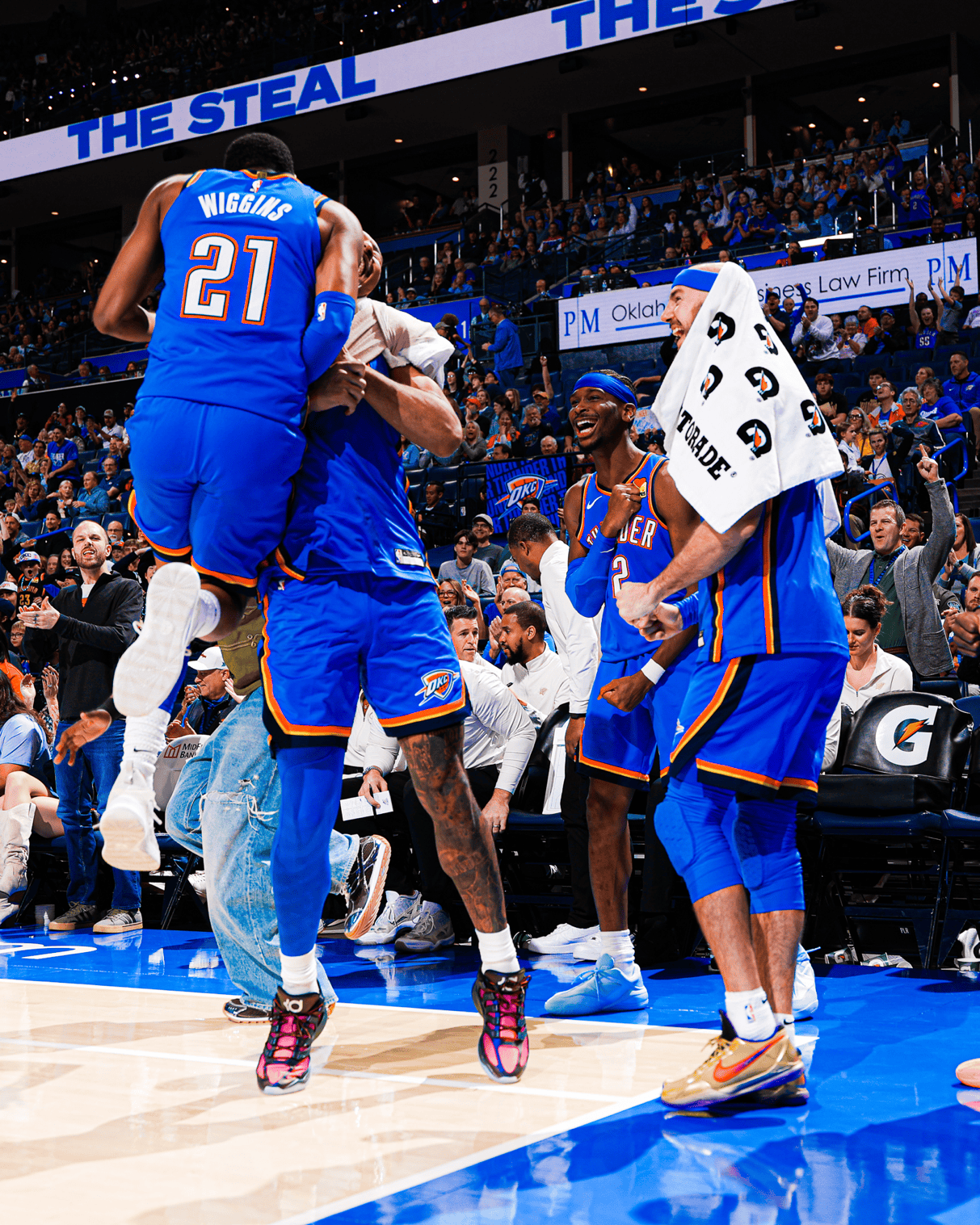 賽后雷霆官媒更新了X,媒曬曬出了球員慶祝照與球迷分享。慶祝