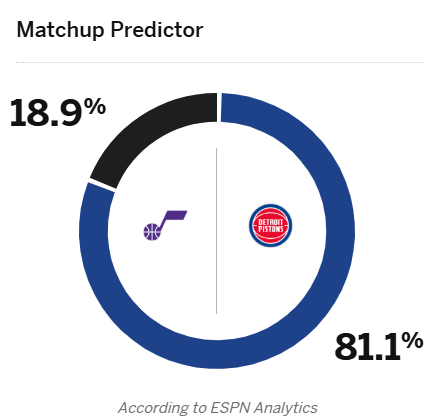 [流言板]ESPN預(yù)測明日活塞vs爵士比賽:活塞勝率高達81.1%