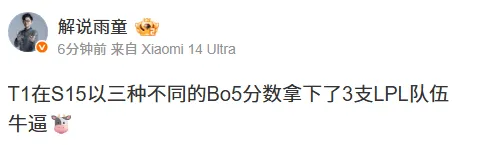 T1在S15以三種不同的Bo5分數(shù)拿下了3支LPL隊伍