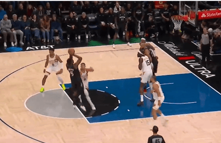 比賽第一節(jié),投命愛德華茲找準(zhǔn)節(jié)奏中距離拔進(jìn),愛德古德溫迎著戈貝爾拋投命中。華茲