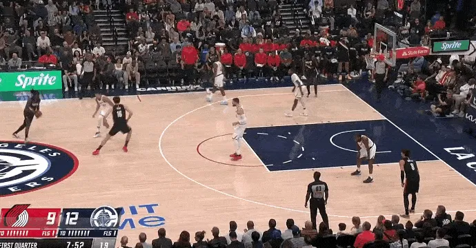 NBA常規(guī)賽,開(kāi)拓者對(duì)陣快船的到本比賽正在進(jìn)行中。