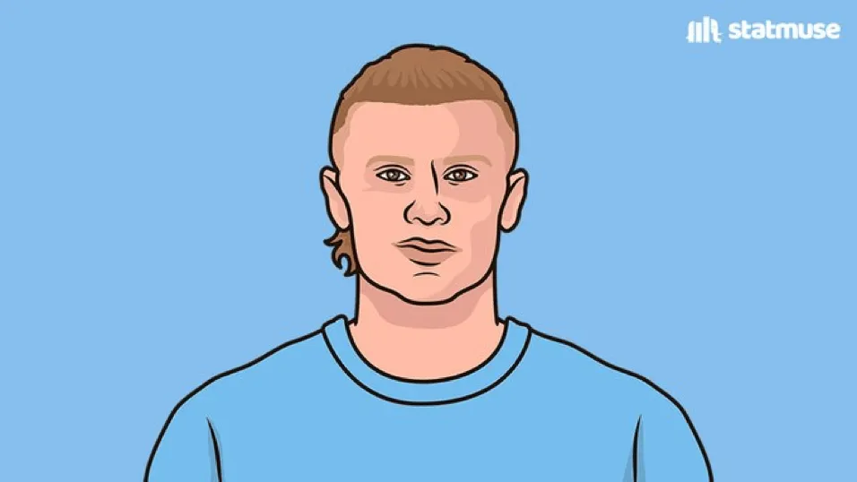 虎撲11月03日訊 英超聯(lián)賽,曼城3-1戰(zhàn)勝伯恩茅斯,曼城哈蘭德上演梅開二度。近場均進StatMuse FC統(tǒng)計了一組關(guān)于挪威前鋒的打進數(shù)據(jù)。