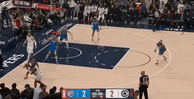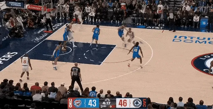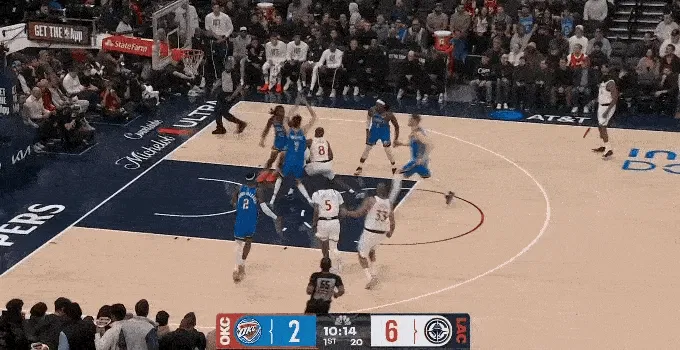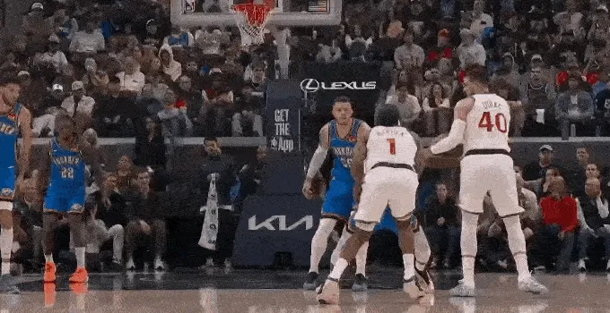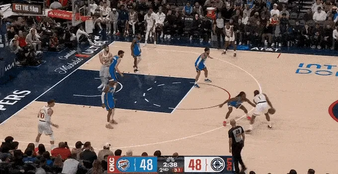 哈登被包夾,科林斯罰球線接應(yīng),助攻祖巴茨內(nèi)線得分,非常少見(jiàn)的團(tuán)隊(duì)配合