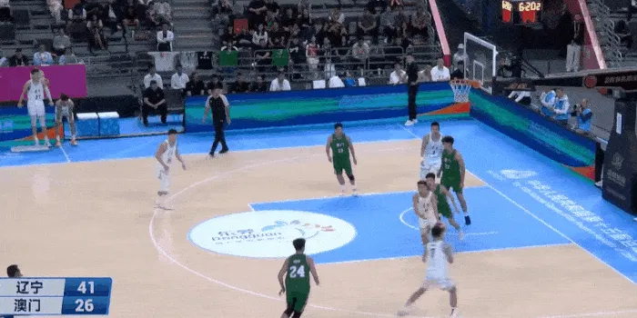 全運會男籃小組賽,遼寧對陣澳門的接球記分比賽正在進行中。