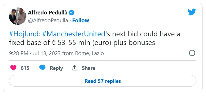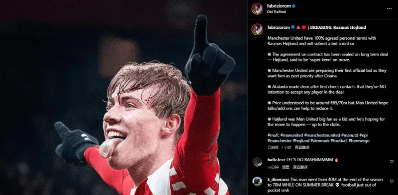 羅馬諾則是表示,亞特蘭大對霍伊倫德的要價為6500萬歐元至7000萬歐元。也就是目前雙方最低存在1000萬歐元的差距,曼聯(lián)本來是打算通過加入球員的方式彌補這一份差距的,不過亞特蘭大好像是拒絕了,他們不需要球員+轉(zhuǎn)會費的模式,他們只想要現(xiàn)金。