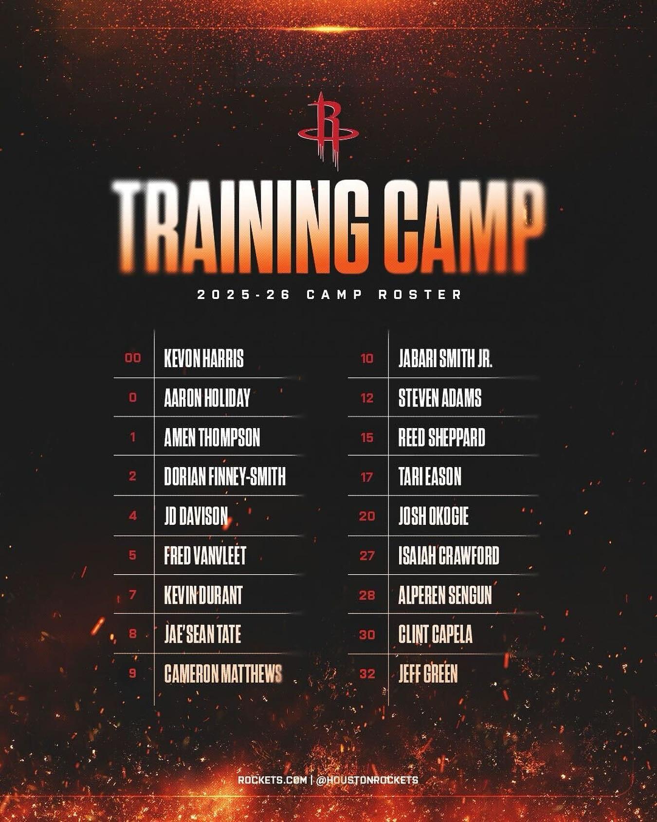 虎撲09月27日訊 今日,火箭官方ins曬出了訓(xùn)練營名單并配文:
