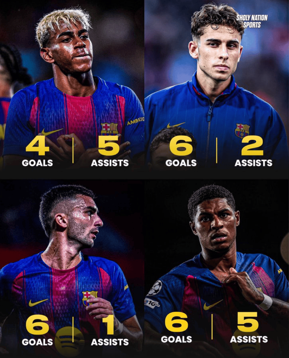[流言板]巴薩部分攻擊手本賽季數(shù)據(jù):亞馬爾4球5助,流言拉拉什福德6球5助由虎撲足球資訊 發(fā)表在國際足球資訊 https://bbs.hupu.com/482