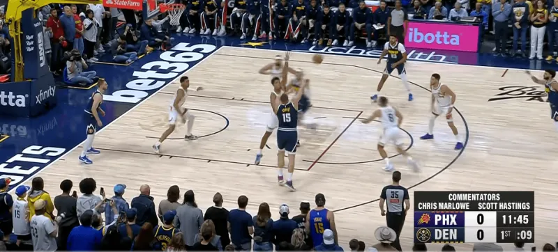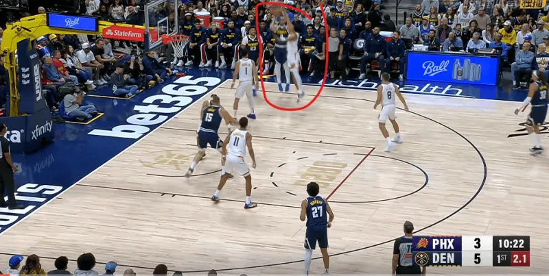 約基奇選擇將球傳給空切到內線,無人防守的戈登,戈登扣籃打進。