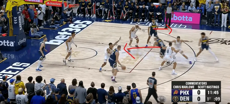 這個戰(zhàn)術有很多個選擇,約基奇擔任發(fā)牌者再適合不過了。