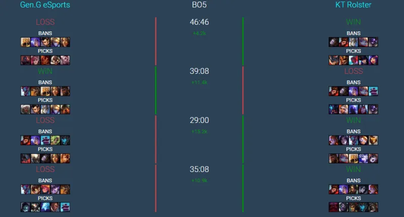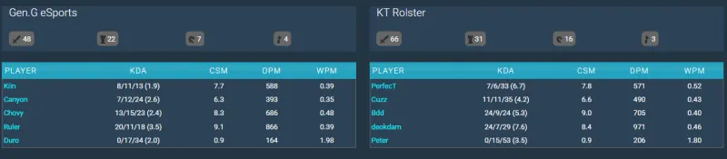 S15四強賽KT 3-1 GEN賽后數(shù)據(jù)