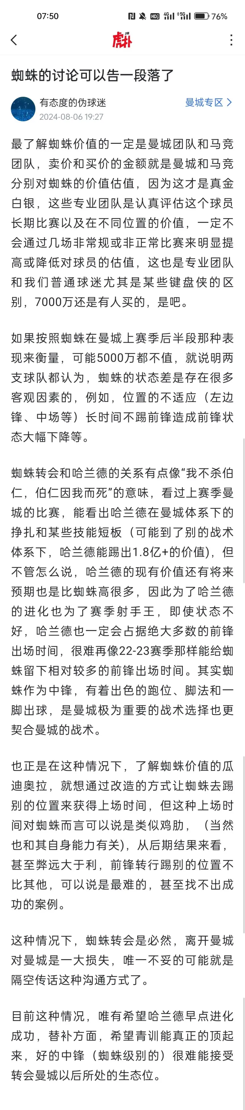 觀點(diǎn)簡(jiǎn)單復(fù)述:小蜘蛛是觀點(diǎn)長(zhǎng)期代打中場(chǎng)以及左邊鋒,長(zhǎng)時(shí)間踢不到自己熟悉位置而造成狀態(tài)下滑,印證而不是小蜘自己的水平差,現(xiàn)在情況也無(wú)需多言。價(jià)值