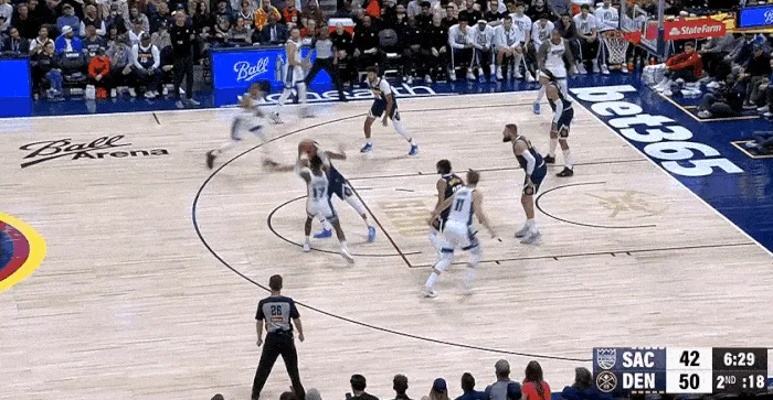 NBA常規(guī)賽,掘金對陣國王的切接球飛前已比賽正在進行中。