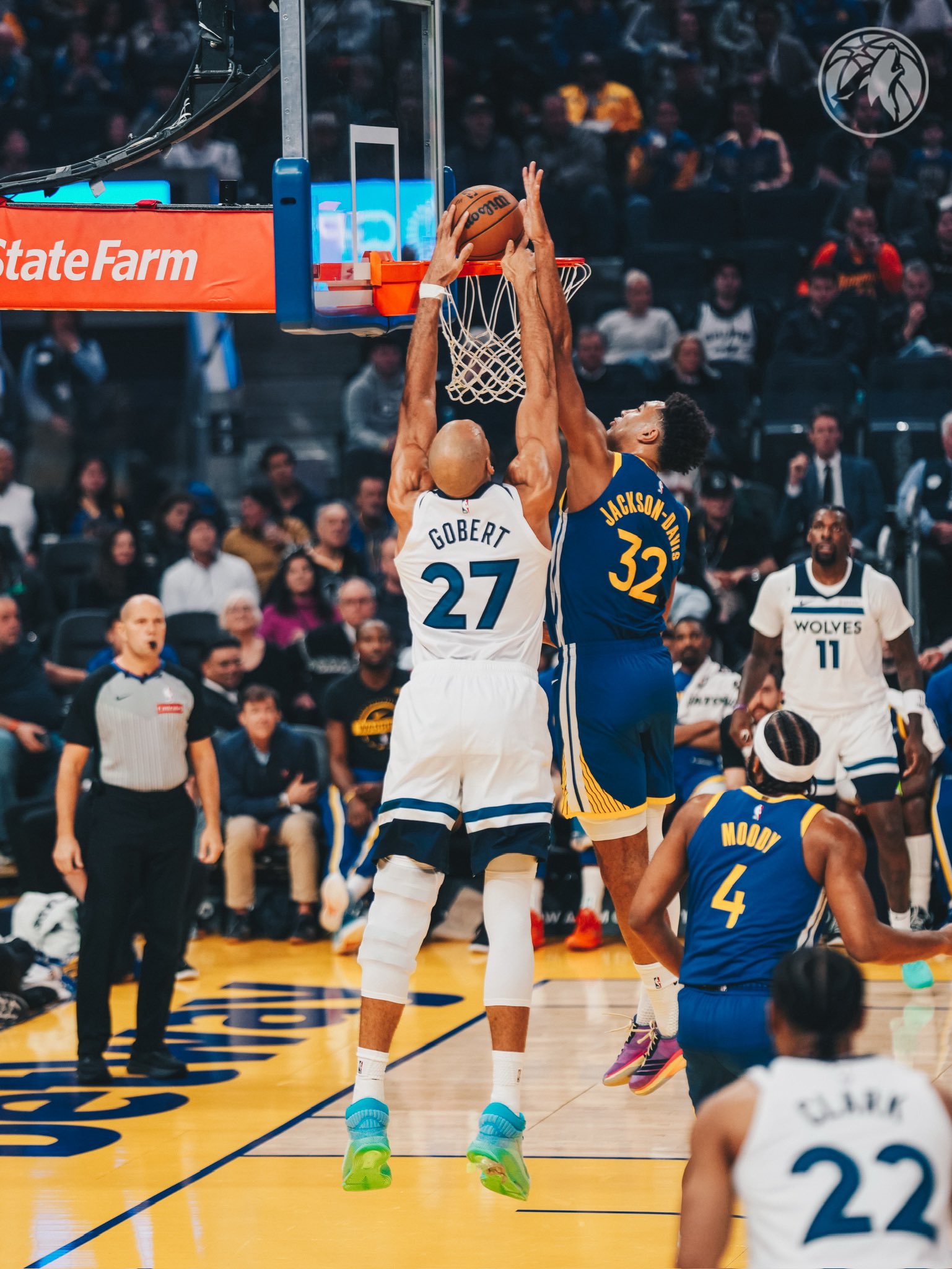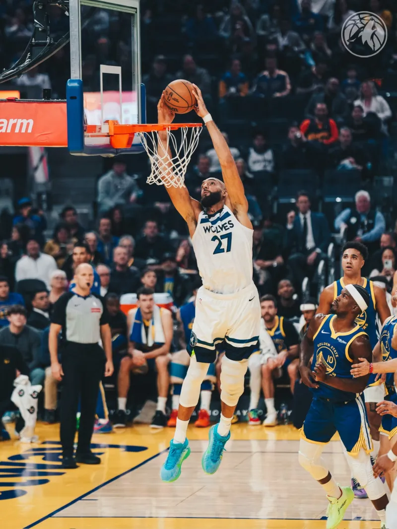 森林狼社媒曬出魯?shù)?戈貝爾首節(jié)兩記精彩扣籃的社媒曬戈首節(jié)瞬間。