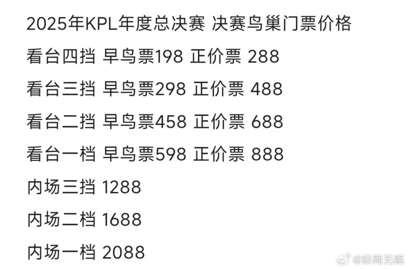 [JR熱議]北笙直播間透露年總鳥巢決賽門票價格:最低198,熱議最高2088由斷線流老莊周 發(fā)表在王者榮耀 https://bbs.hupu.com/kog