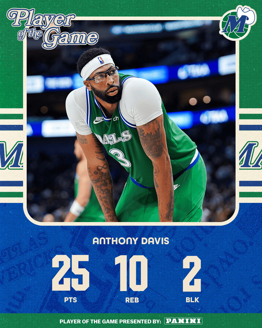賽后,板獨獨行俠官方分享安東尼-戴維斯數(shù)據(jù)海報,行俠并配文:綠衣野獸。官方
