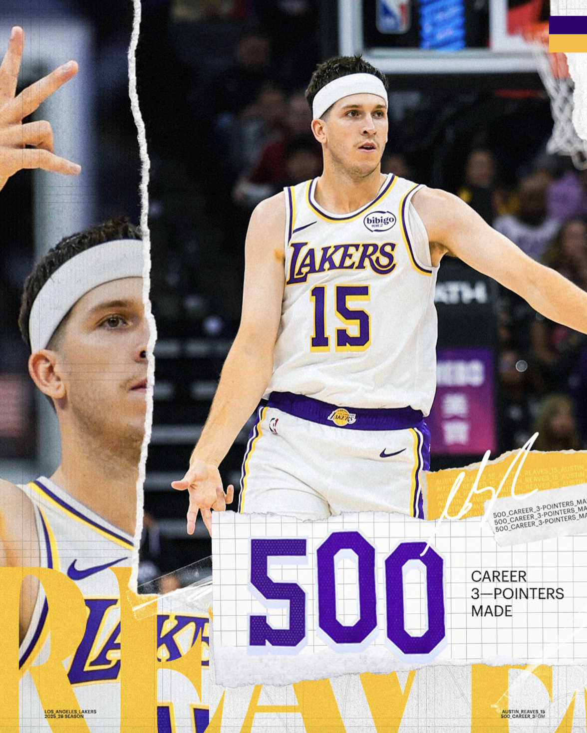 “奧斯汀-里夫斯完成第500記三分“,斯海湖人官媒附文道。流言流砥里弗里弗