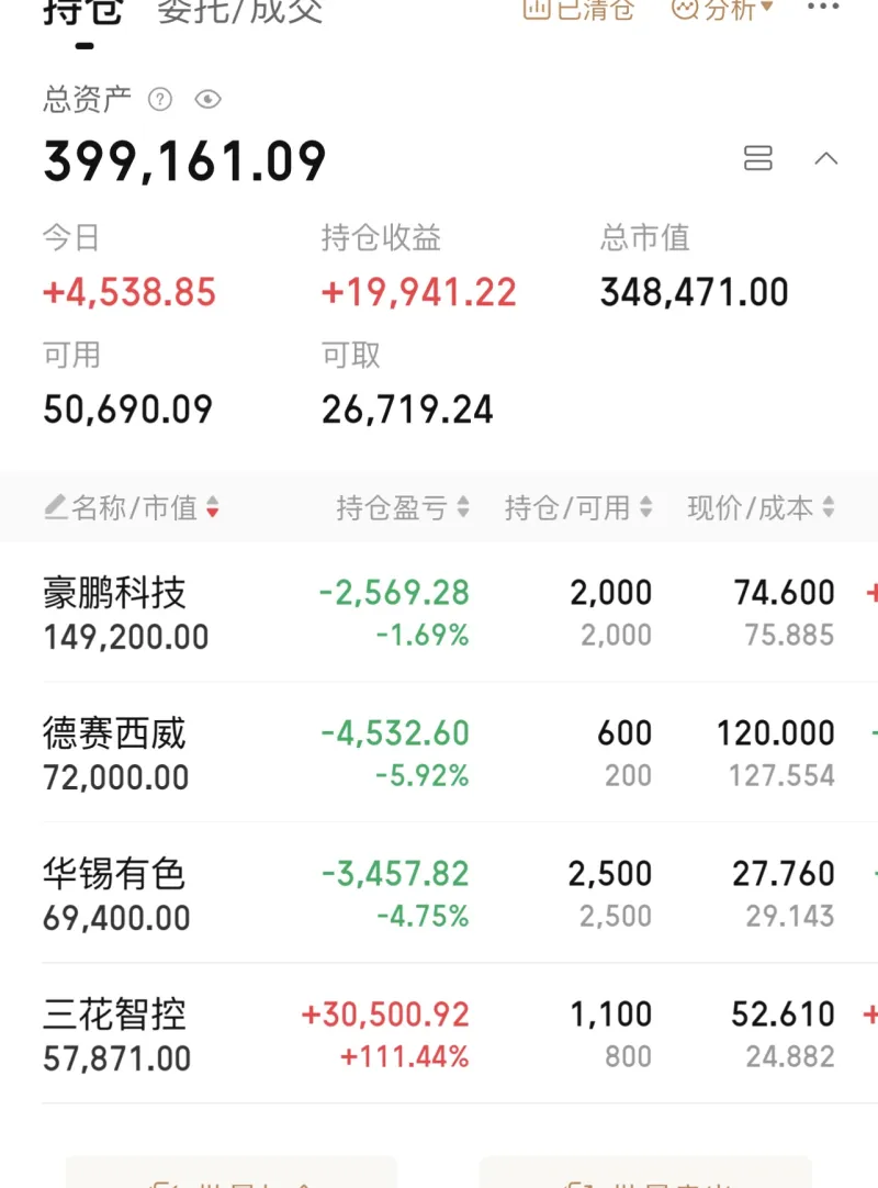 我現(xiàn)在陸續(xù)在股市中持有大概50萬的股票,三花智控和洛陽鉬業(yè)的收益(還未完全鎖定)均超過了3萬元,但是2只股的主要投入其實都沒超過10萬。洛陽鉬業(yè)持有大概8千股、成本不到10元,但是在14左右逐漸賣出了,屬于賣飛了;三花智控我從30開始持有,主要持有的大概是2500股左右,因為回撤階段買入后來又賠本賣出,導(dǎo)致最后成本也一路上漲,今天我賣出了其中的一半。