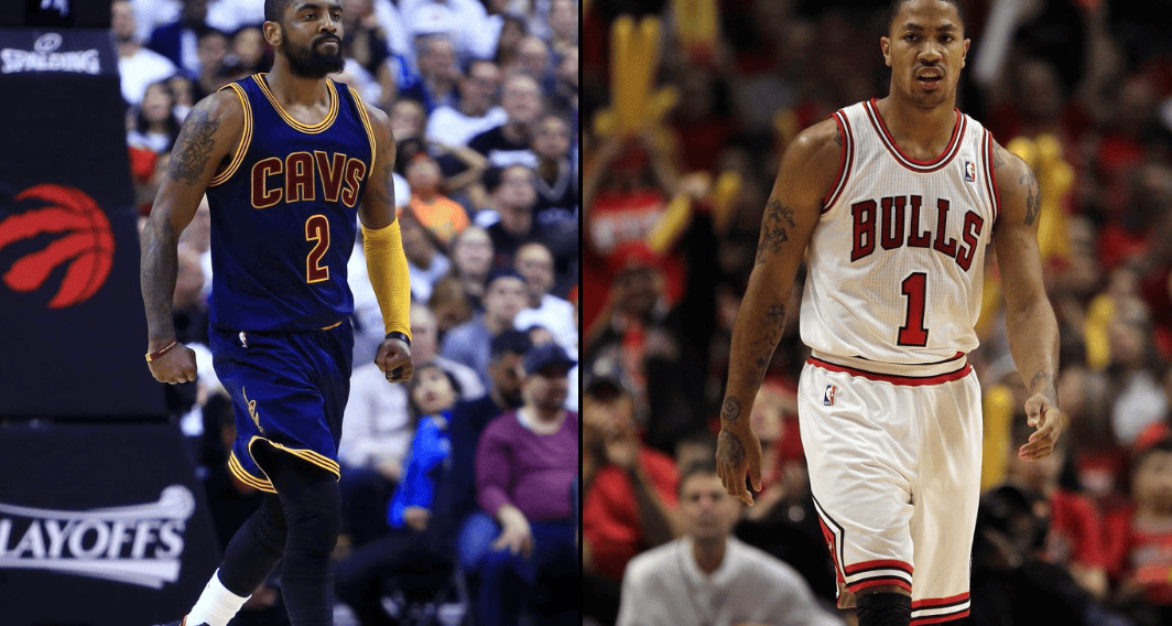圖中的動歐的歷兩名球員是凱里-歐文和德里克-羅斯。