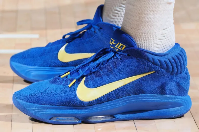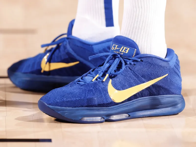 比賽中,著勇助攻格林上腳勇士配色Nike G.T Hustle3 PE。士配色
