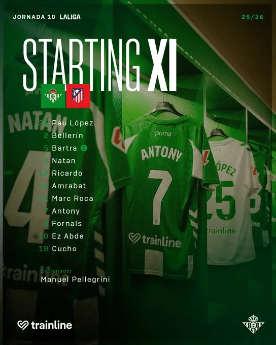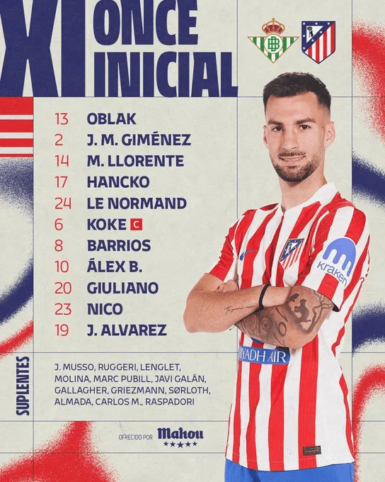 虎撲10月27日訊 西甲第10輪,貝蒂斯主場迎戰(zhàn)馬德里競技。賽前,雙方公布首發(fā)陣容: